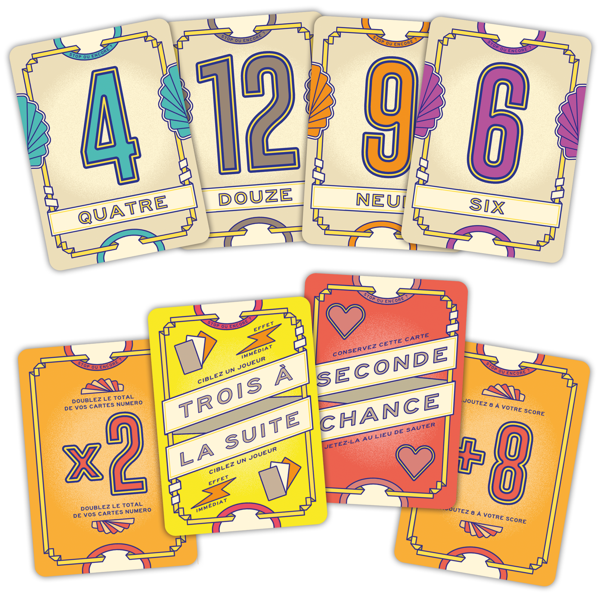 À chaque manche, collectionnez des cartes une par une pour marquer autant de points que le total de leurs valeurs. Mais vous devrez savoir dire stop avant de recevoir un numéro que vous avez déjà ! Sinon, vous sautez et quittez la manche sans gagner de point… Et plus une carte a un numéro élevé, plus il y en a dans la pioche : le paquet compte une carte 1, et douze cartes 12.