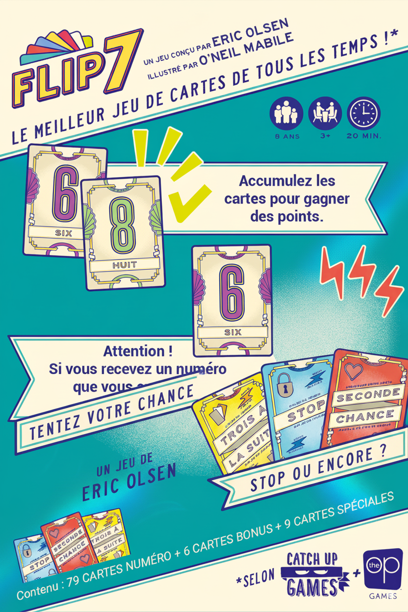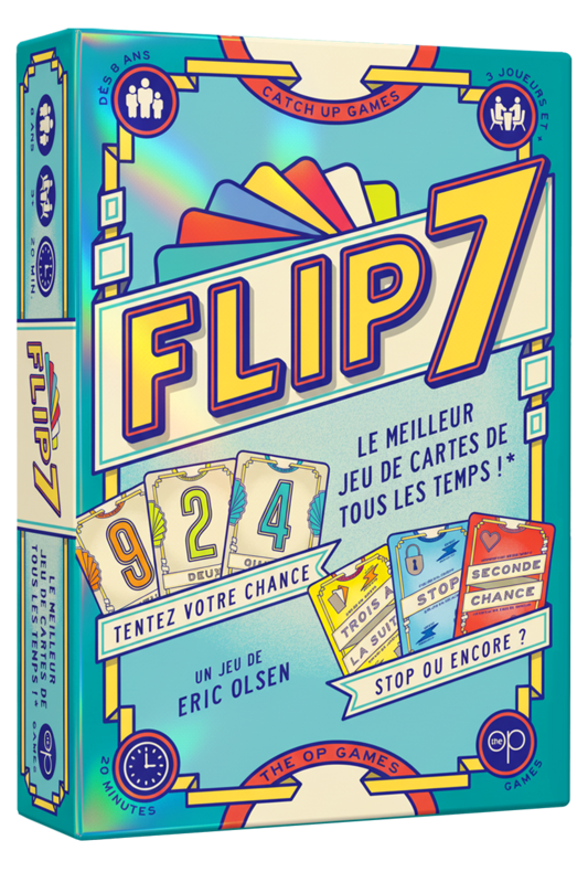 Si vous parvenez à collectionner 7 cartes Numéro différentes, vous réalisez un Flip 7 : vous mettez fin à la manche et gagnez 15 points supplémentaires, sous les yeux ébahis de vos adversaires !