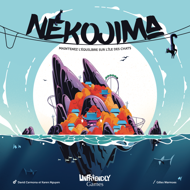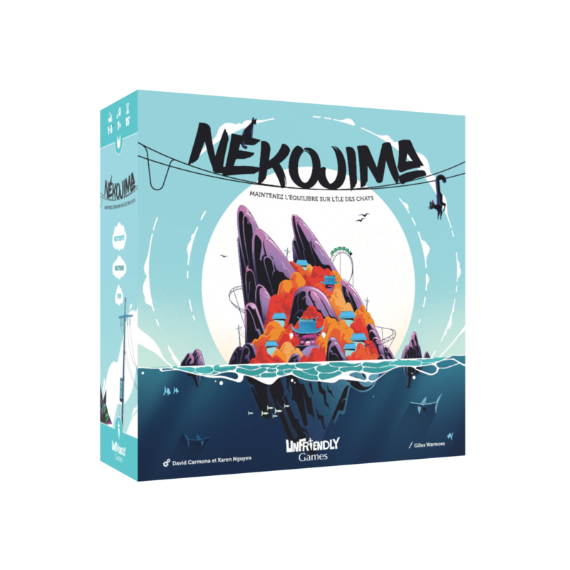 Nekojima est un jeu d’adresse en bois dans lequel il faudra maintenir en équilibre des poteaux électriques en respectant les emplacements sans qu’aucun câble ne se touche. En compétition, le joueur qui fait tomber la structure a perdu. En coopération, le but est d’aller le plus loin possible.