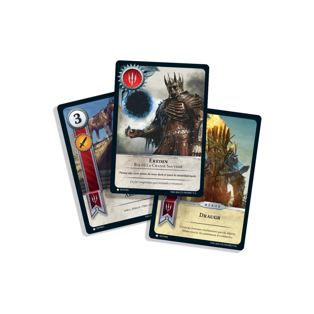 Plongez dans l’univers de The Witcher 3 : Wild Hunt avec GWENT : Le Jeu de Cartes Légendaire, le premier jeu de cartes physique officiel du célèbre RPG. Conçu pour célébrer le 10e anniversaire de The Witcher 3, ce jeu de stratégie et de deck-building vous permet d’incarner l’une des cinq factions emblématiques : Monstres, Empire Nilfgaardien, Royaumes du Nord, Scoia'tael et Skellige.