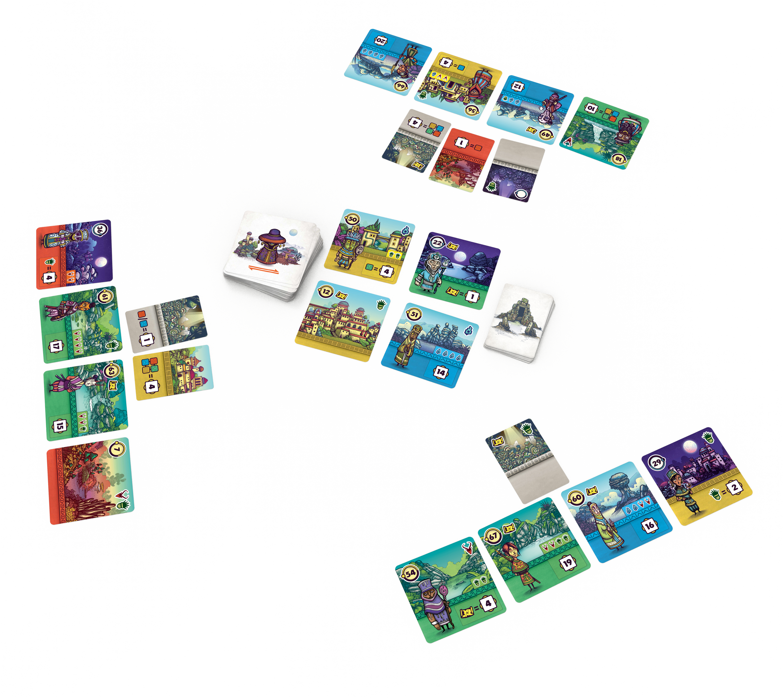 À chaque tour, vous faites votre choix dans votre main de 3. Puis vous complétez votre main grâce à la rivière de cartes. Faraway se jouant en simultané, un astucieux système de priorité accentue encore l'importance de vos décisions. Car choisir en dernier vous laisse moins d'option, réduisant vos possibilités lors des tours suivants.